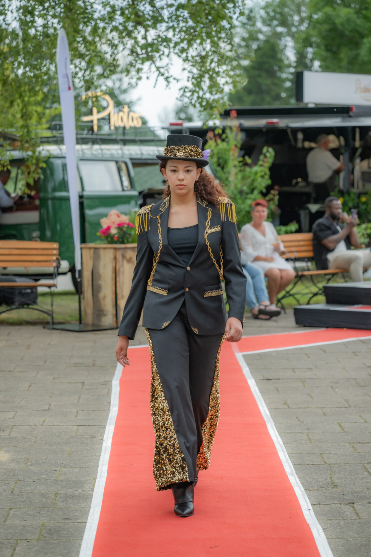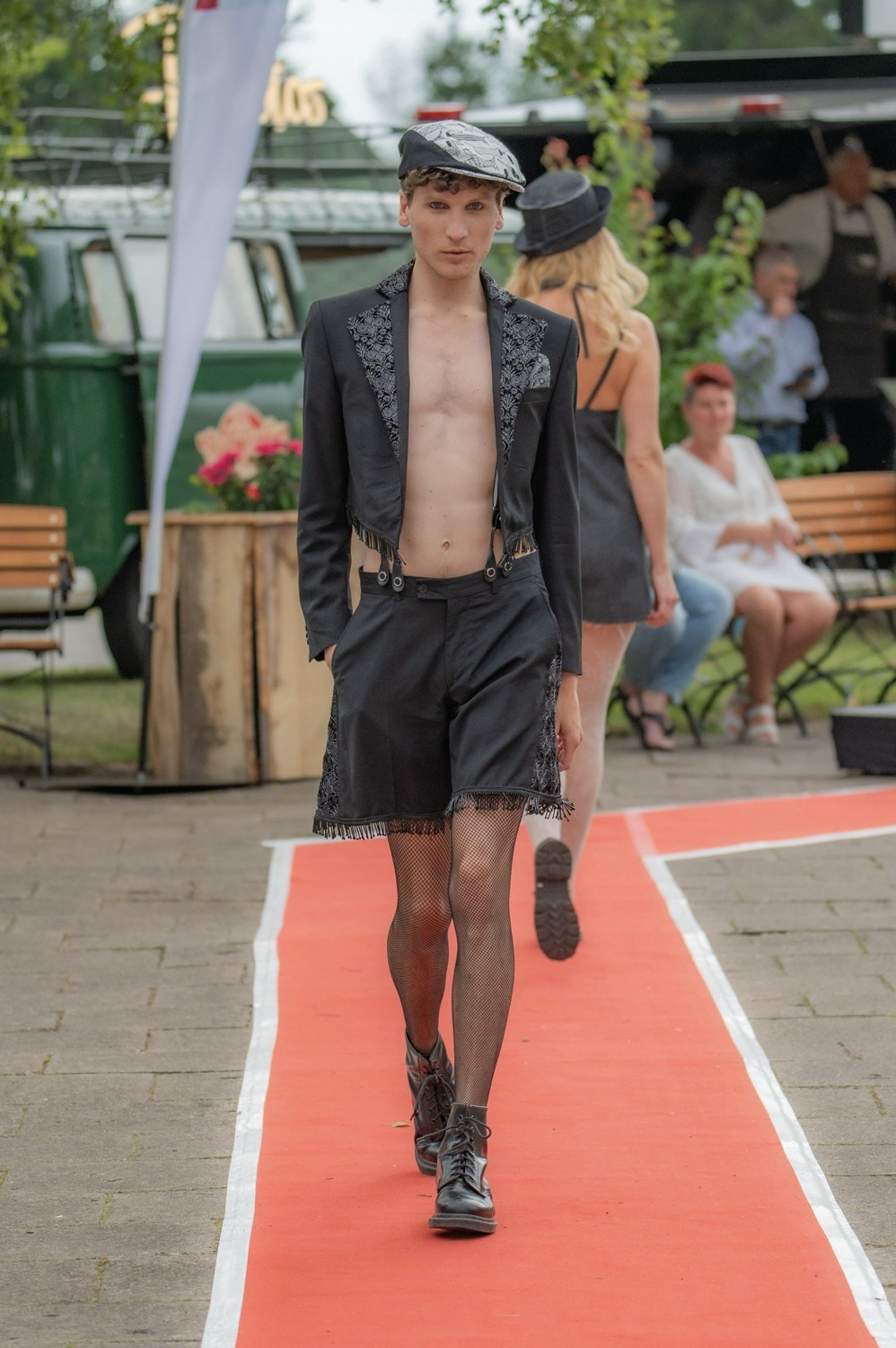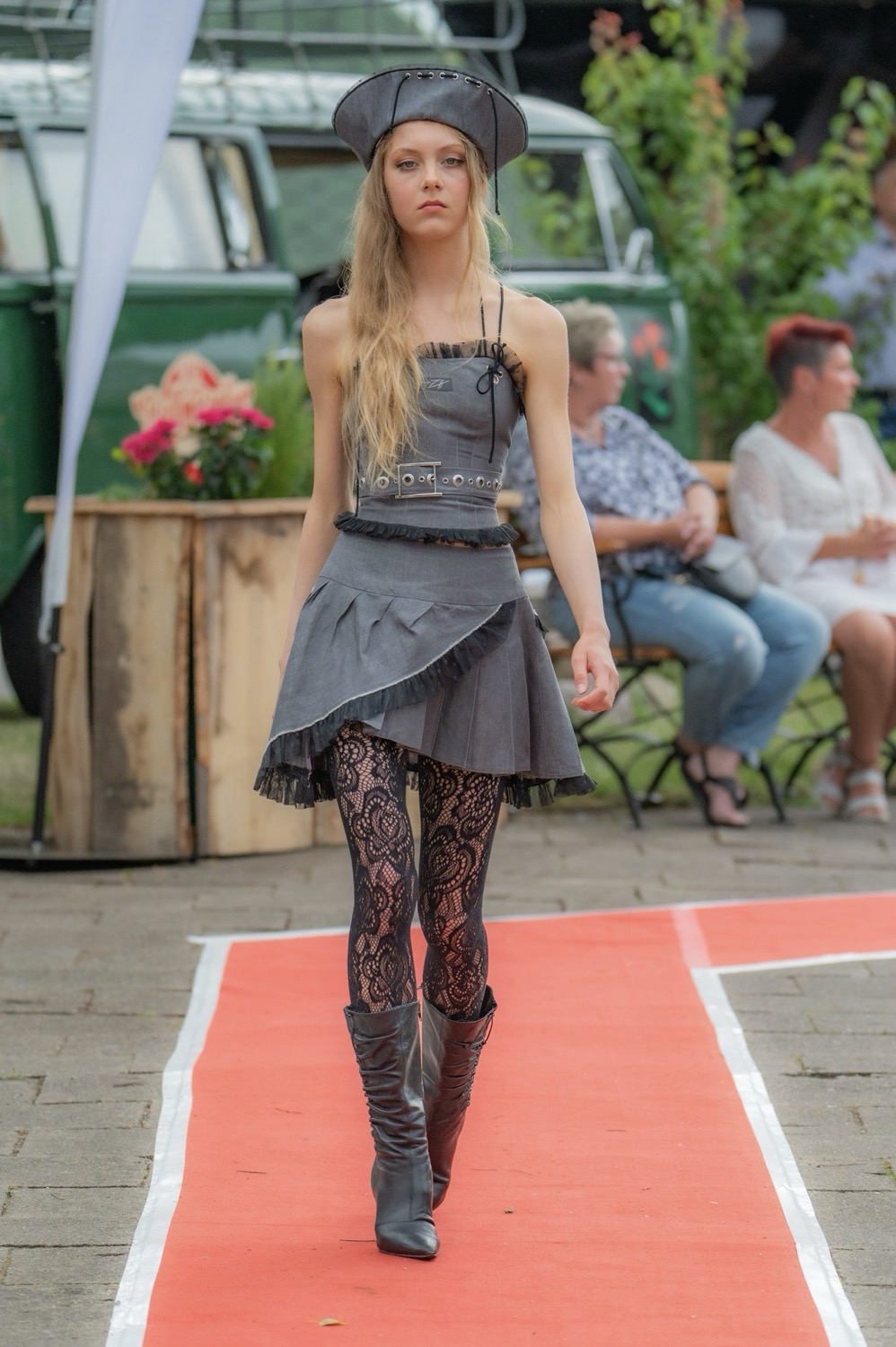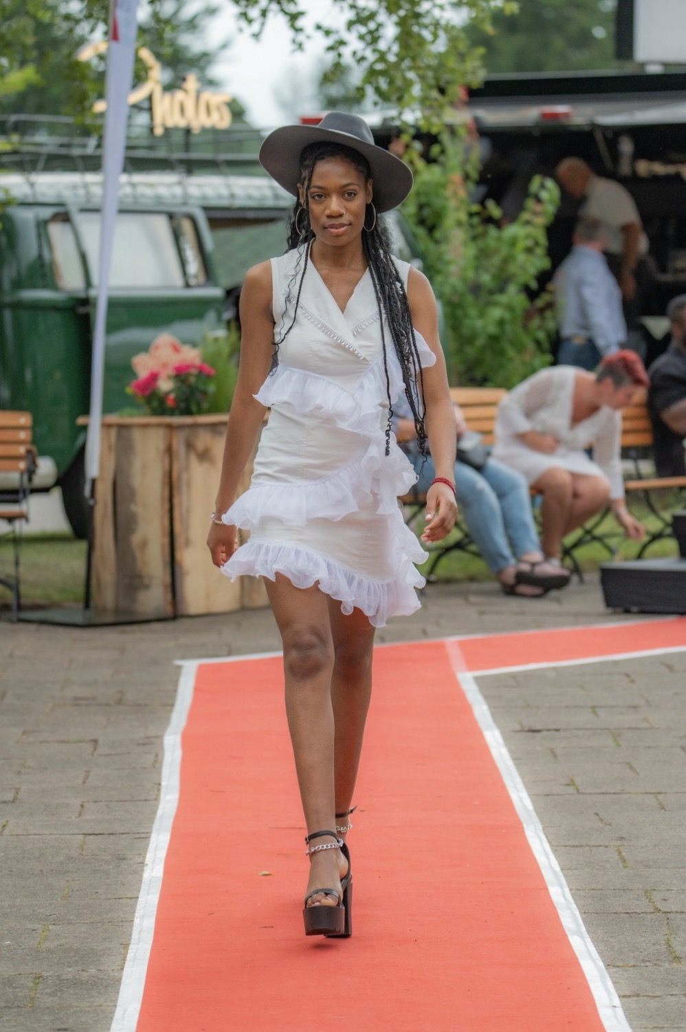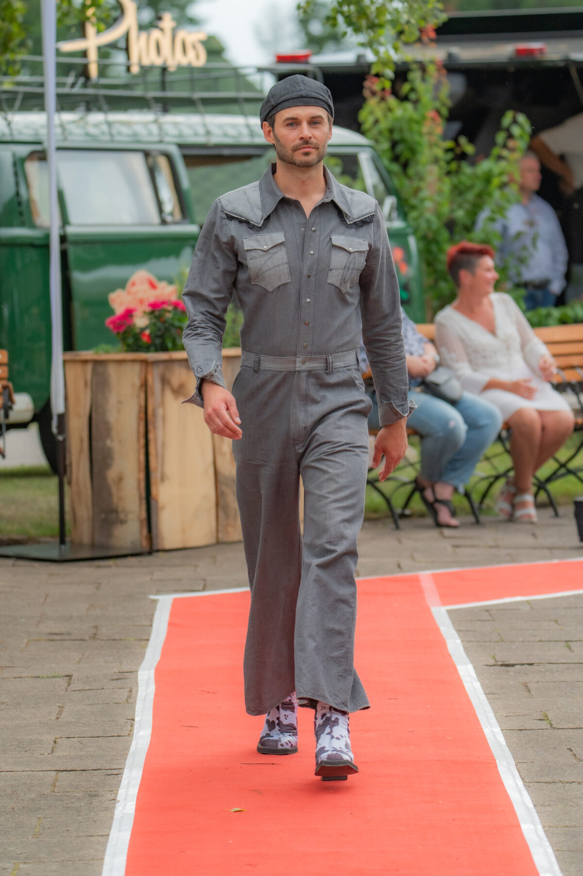 Im Sommer 2025 nahmen wir über Chic&Leger an einer Fashionshow im Forsthaus Damerow auf Usedom teil. Im Rahmen der Veranstaltung präsentierten wir eine Auswahl unserer Kollektion, bestehend aus Kleidern, Overalls sowie upgecycelten Anzügen, ergänzt durch passende Kopfbedeckungen.