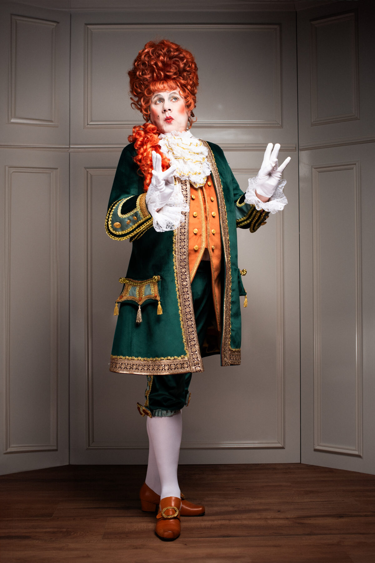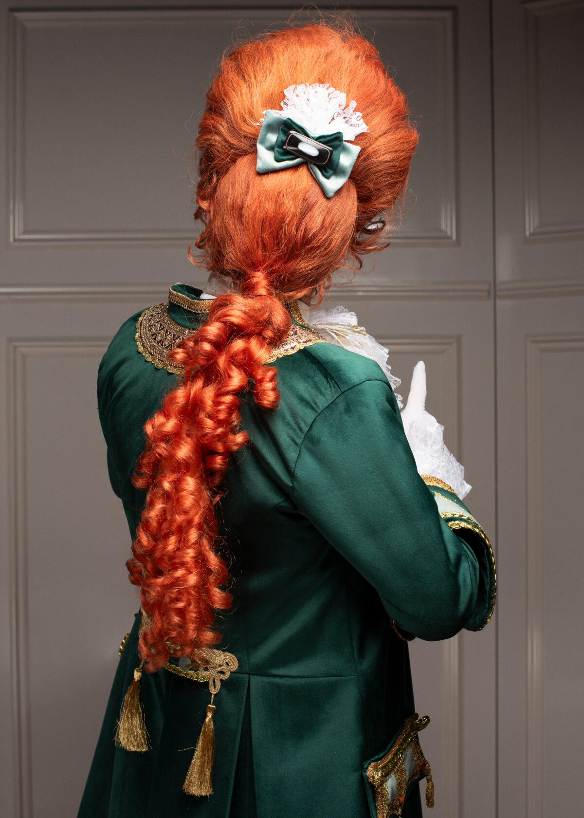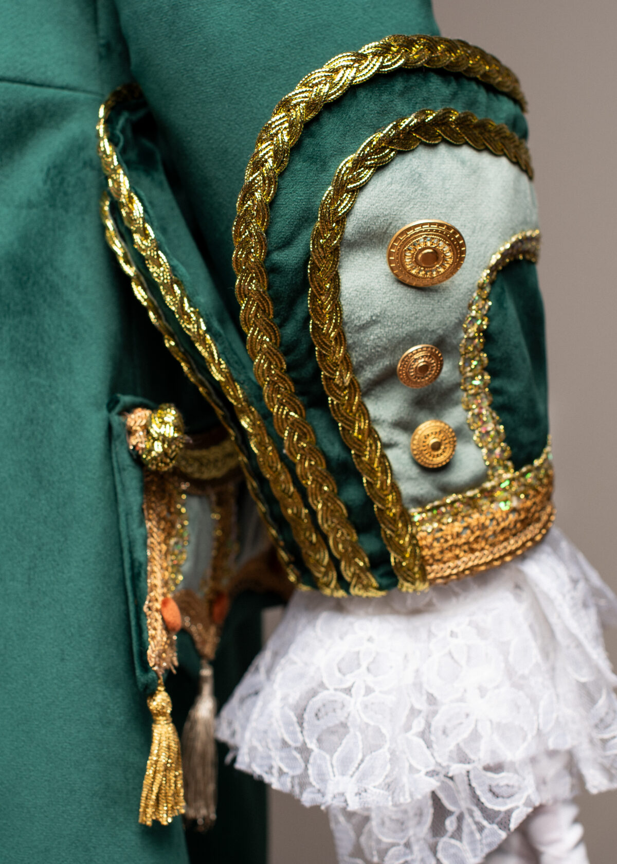 Das Kostüm „Der Zeremonienmeister“ entstand im Jahr 2023 für den Berliner Künstler und Moderator „Marquinhos“. Die Vision kam vom Künstler, das Design entwickelte Reena Mauksch und fertigte das Kostüm auf Maß an.