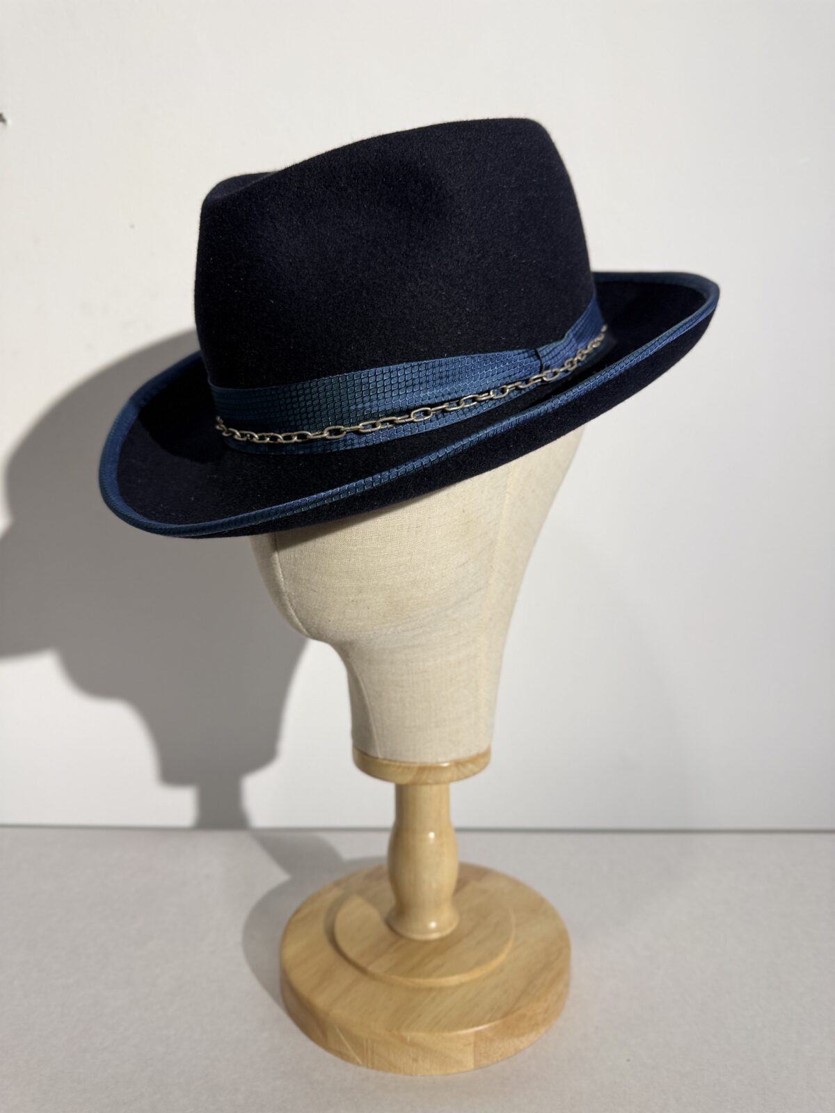 Verarbeitet werden unterschiedliche Filzqualitäten, von sehr weichen bis hin zu festen Ausführungen. Alle Varianten bleiben formbar und eröffnen verschiedene Möglichkeiten in der Bearbeitung und im Ausdruck. Ergänzt werden die Arbeiten durch hochwertige Innenfutter sowie präzise ausgearbeitete Details. Individuelle Verzierungen setzen gezielte Akzente und unterstreichen den jeweiligen Charakter der einzelnen Stücke.