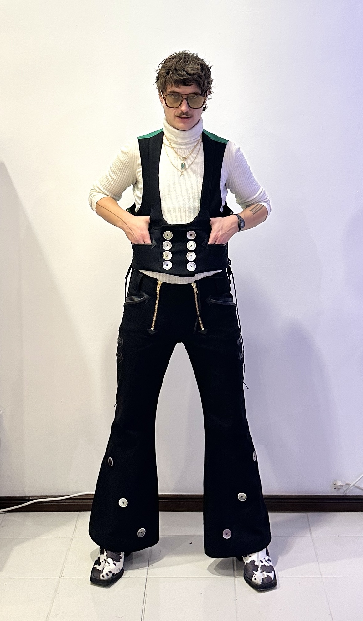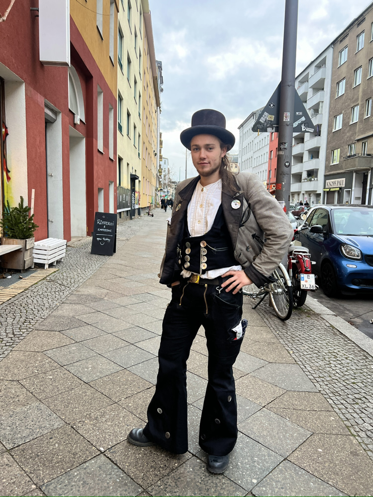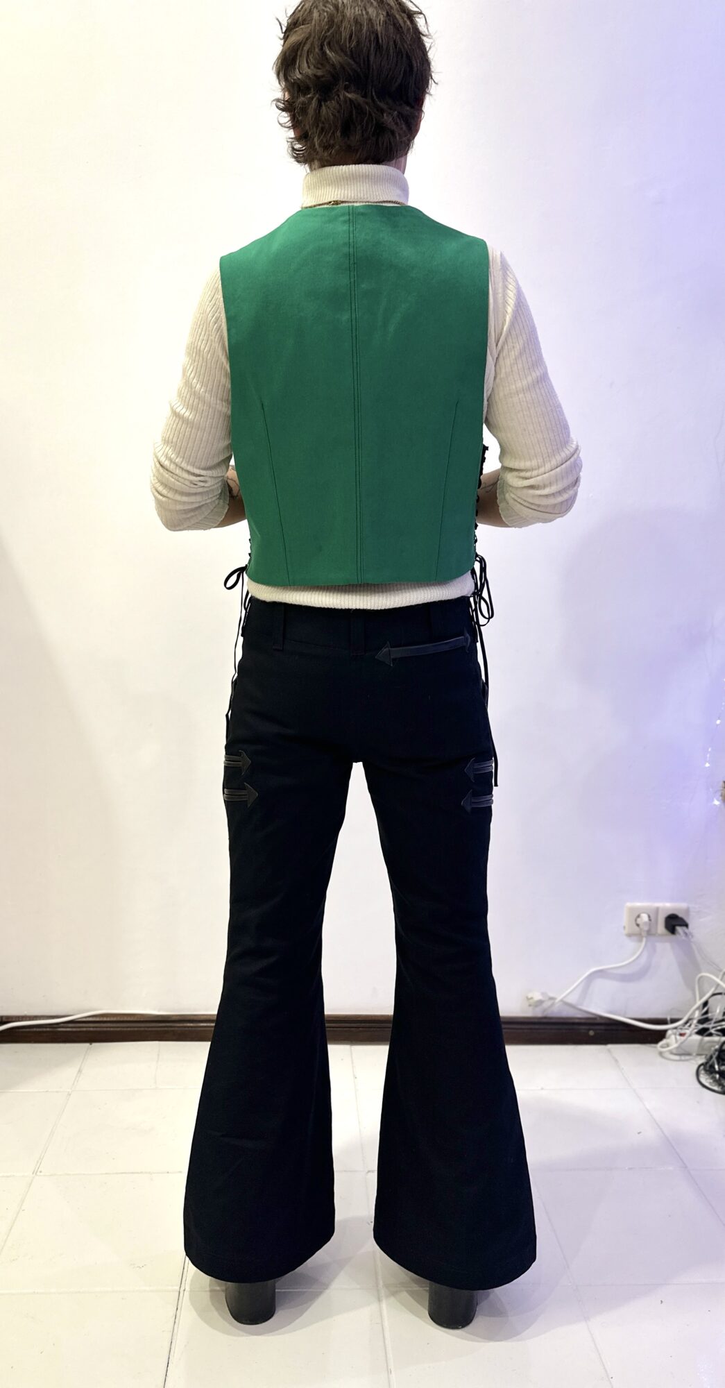 Gefertigt wurde eine maßgeschneiderte Kluft in den klassischen Tischlerfarben Schwarz und Grün. Im Rahmen des Entstehungsprozesses setzten wir uns intensiv mit den tradierten Regeln der Zunftkleidung auseinander. Von der fachgerechten Anbringung der Knöpfe mit spezifischen Sticharten bis hin zu spannenden Taschenlösungen, denn Wandergesellen tragen ihren gesamten Besitz am Körper. Das Projekt stellte für uns eine wertvolle handwerkliche Auseinandersetzung mit gelebter Tradition dar. Von Handwerker*innen zu Handwerker*innen wünschen wir allen Menschen auf Wanderschaft weiterhin viel Erfolg und eine sichere Reise.
