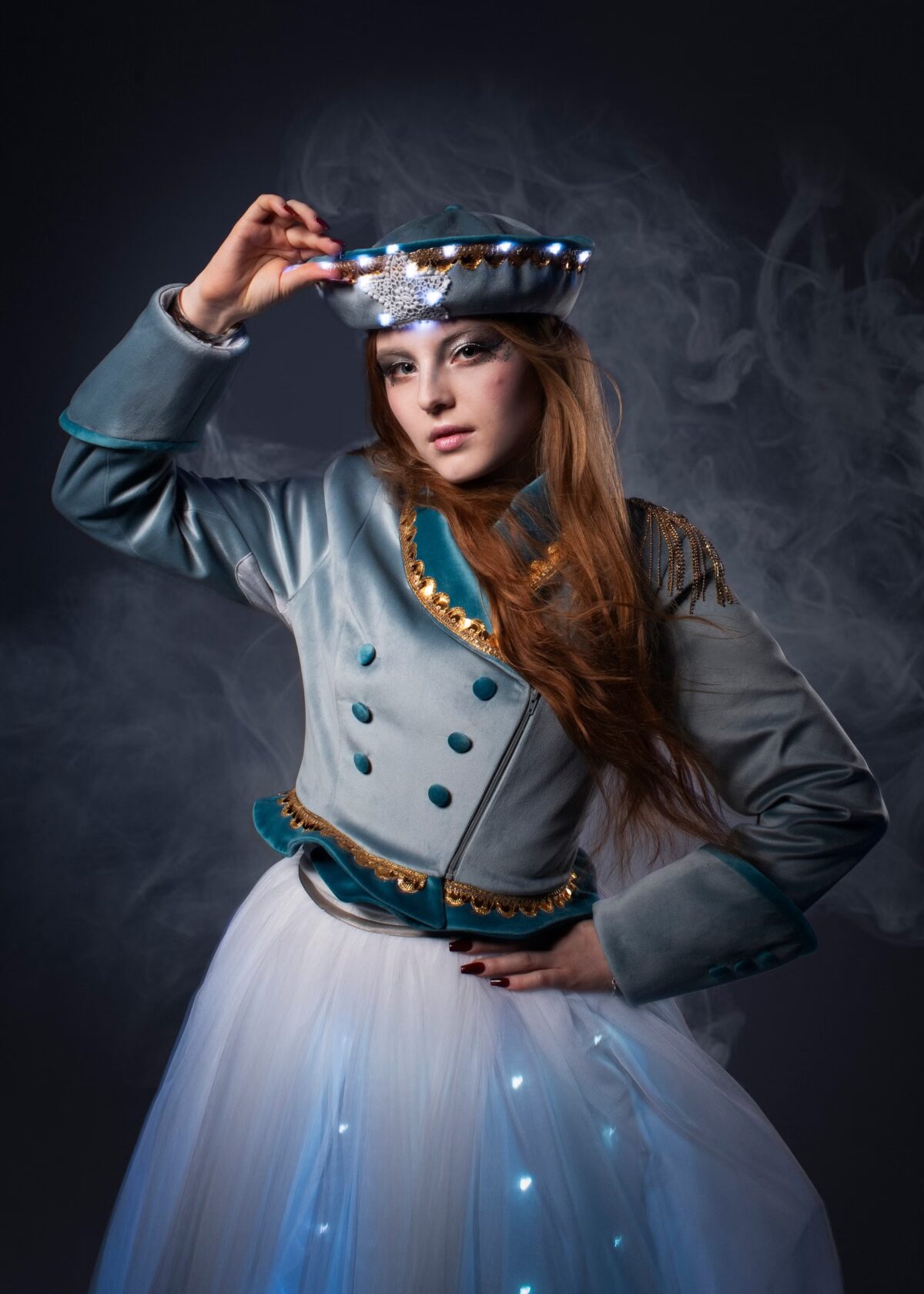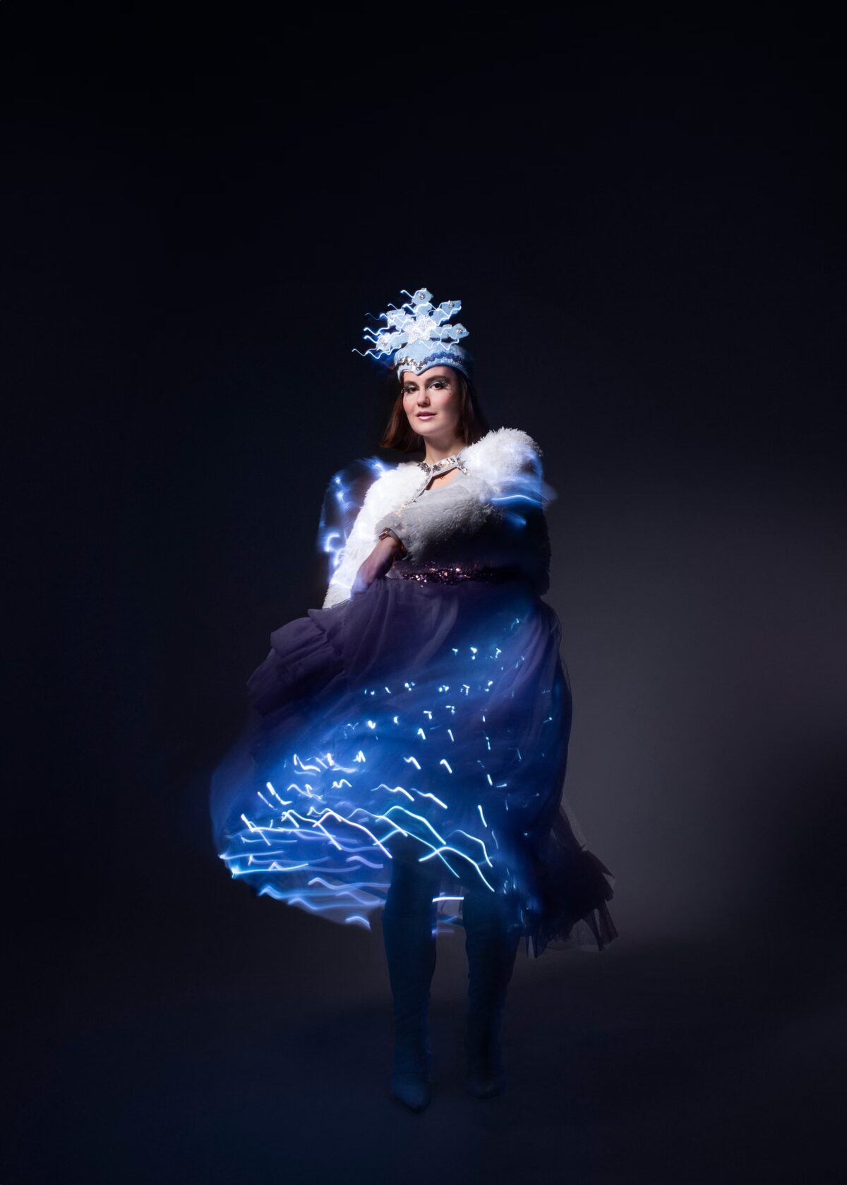 Die Kostümreihe „Lichtkleider“ entstanden im Jahr 2024 für die Hamburger Weihnachtsparade. Wir designten 10 Lichtkleider: 4 „Hamburger MatrosInnen“ und 6 „Hamburger SchneekönigInnen“. Alle Kostüme haben beleuchtete Tüllrocke und beleuchtete Kopfteile.